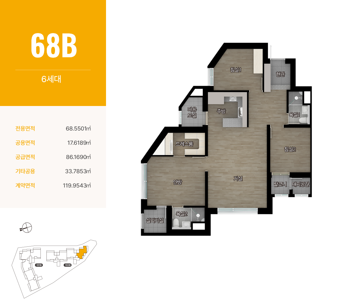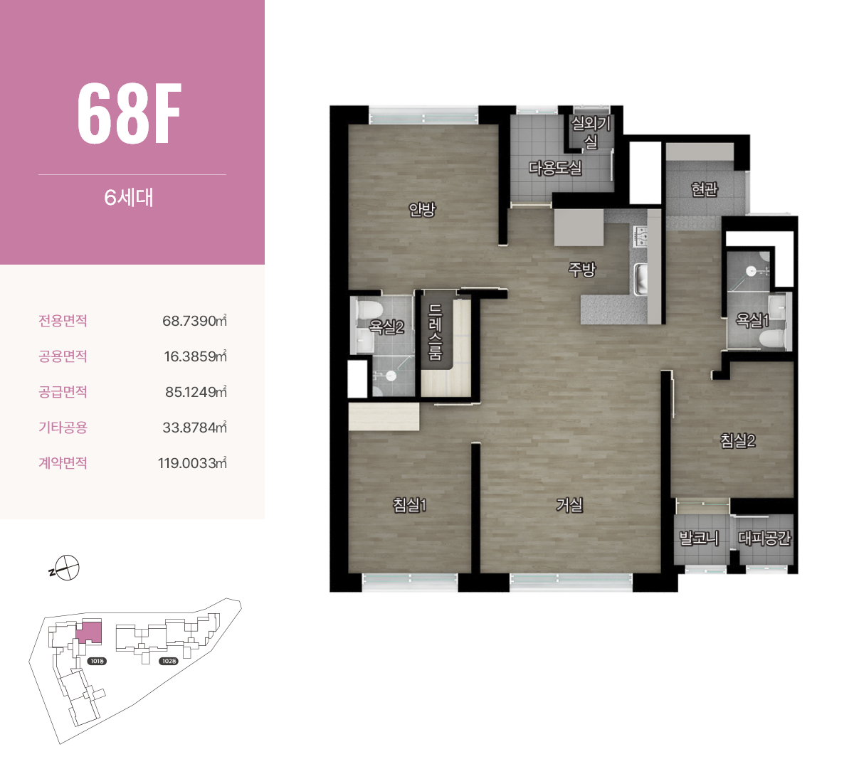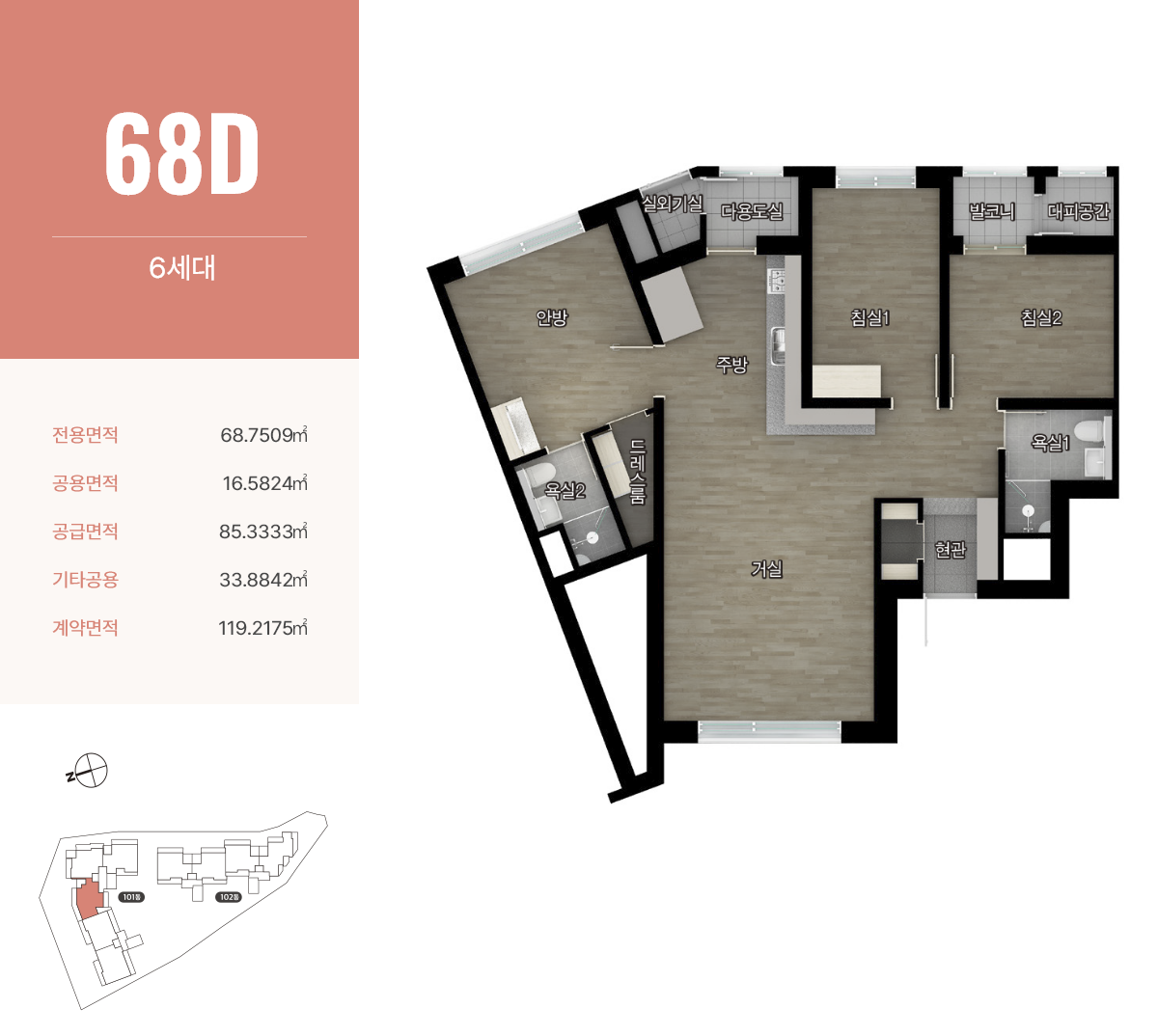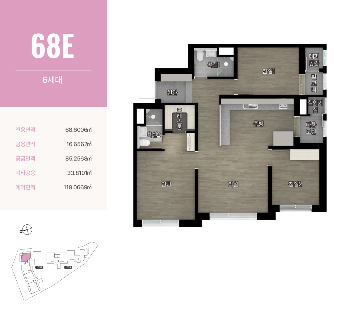 공급규모 : 아하트 지하 2층, 지상 7층, 2개동 총 63세대 중 일반분양 35세대