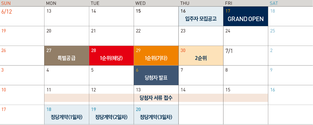 특별공급(기관추천, 다자녀, 신혼부부, 노부모부양, 생애최초) : 2022년 06월 27일 월요일