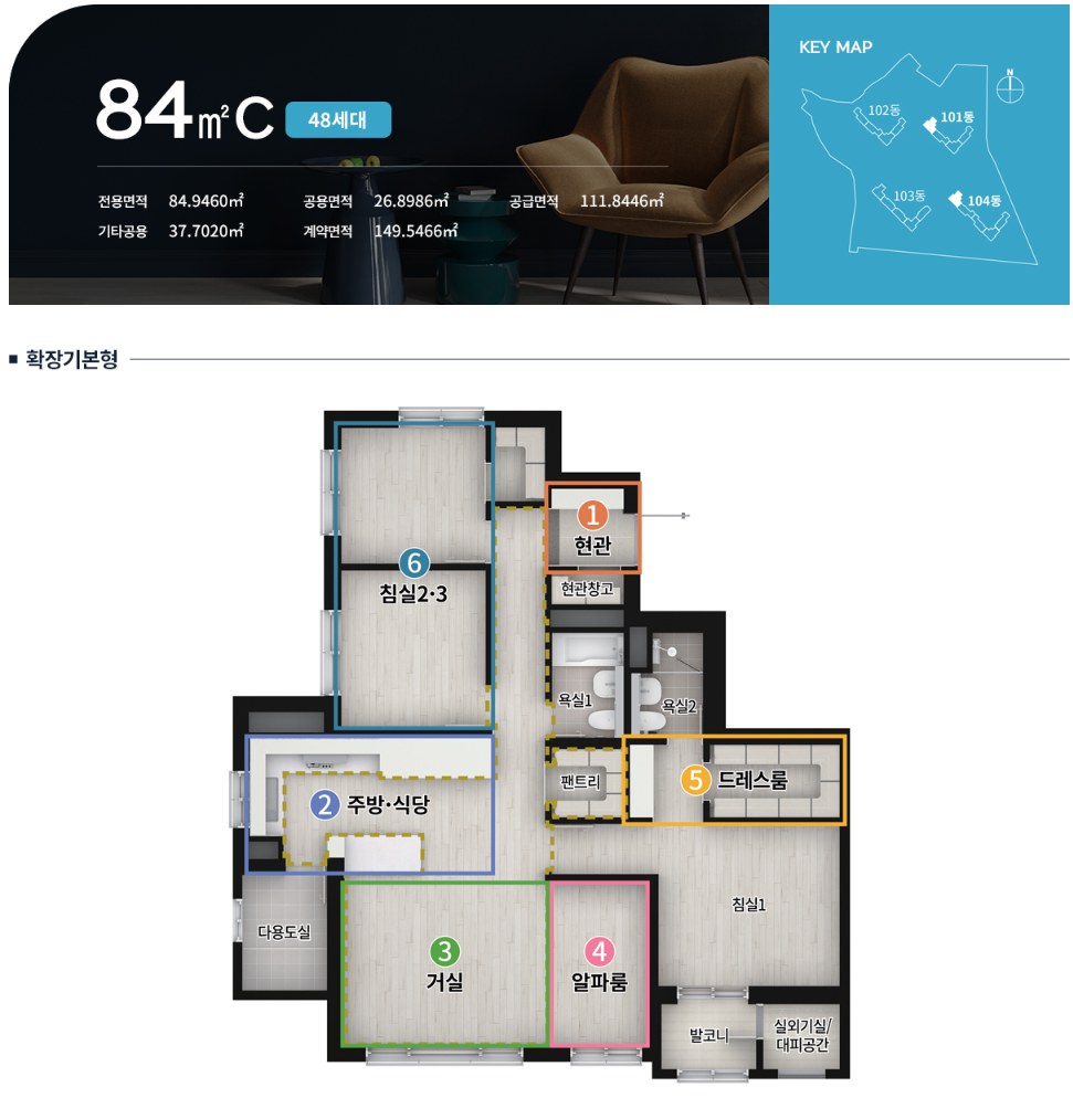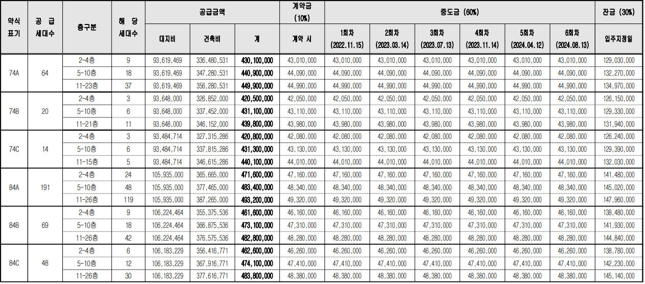 분양타입 : 74A / 74B / 74C / 84A / 84B / 84C