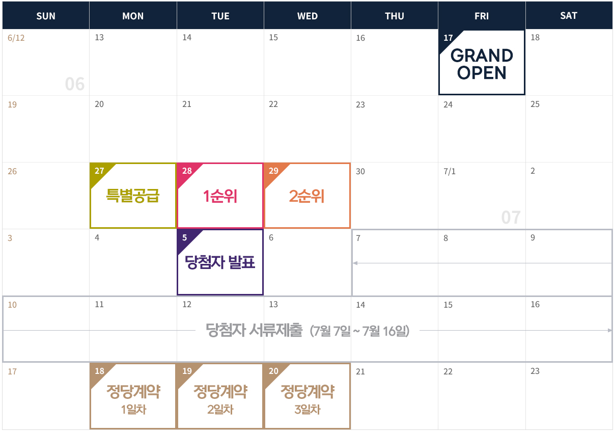 특별공급(기관추천, 다자녀, 신혼부부, 노부모부양, 생애최초) : 2022년 06월 27일 월요일