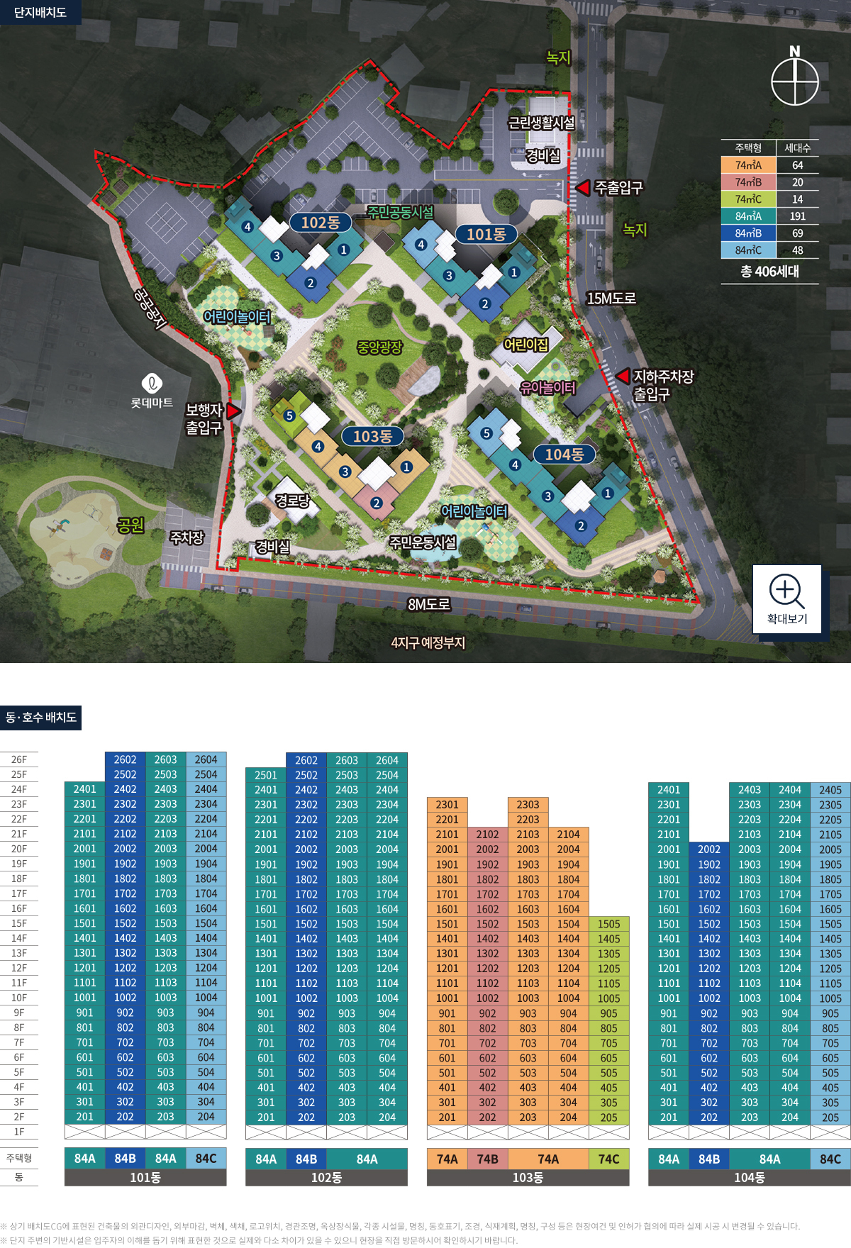 공급규모 : 아파트 지하 1층, 지상 26층 4개동 총 406세대 및 부대복리시설