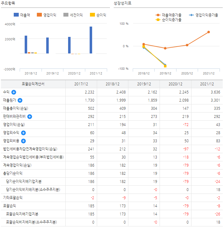 ③ 21년 매출액 : 3,636억