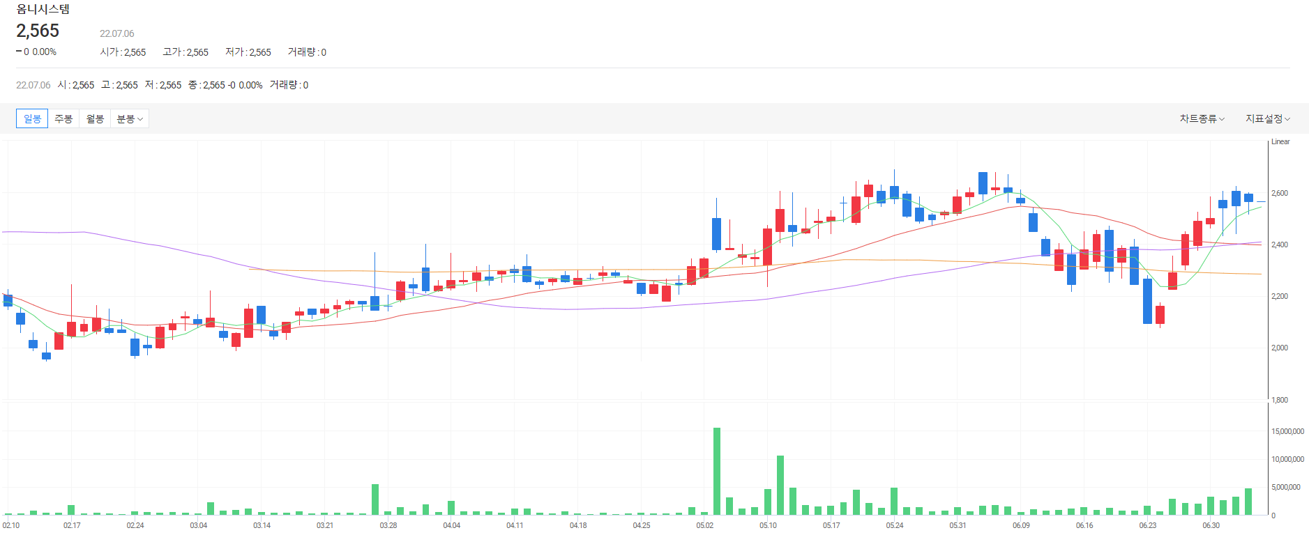 최근 강하게 반등하고 있는 옴니시스템의 주가