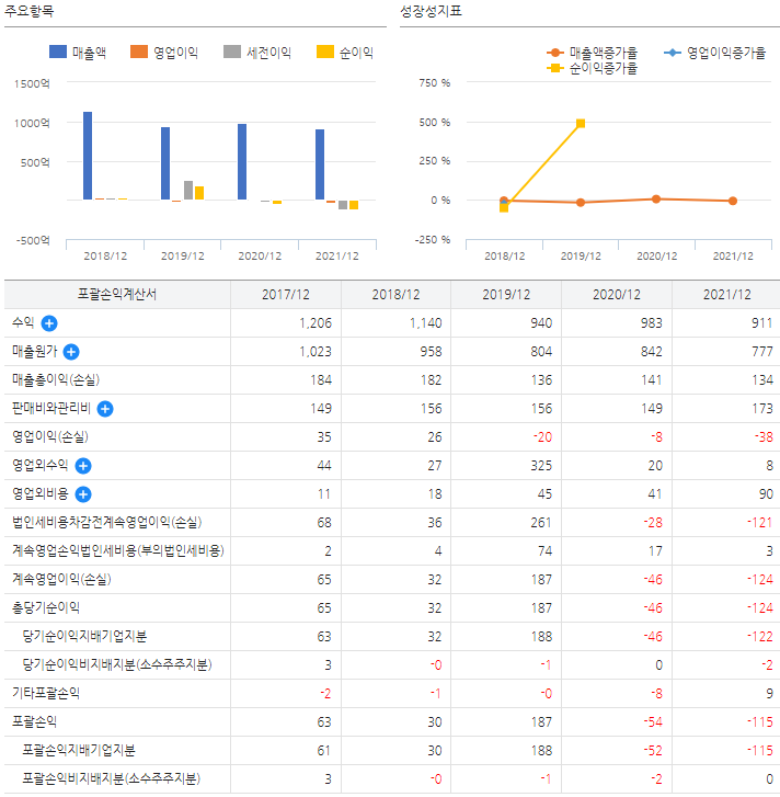 ③ 21년 매출액 : 911억