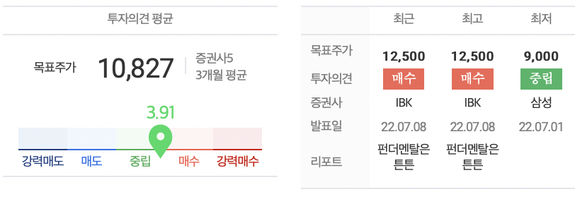 - IBK투자증권 목표주가 12,500원
