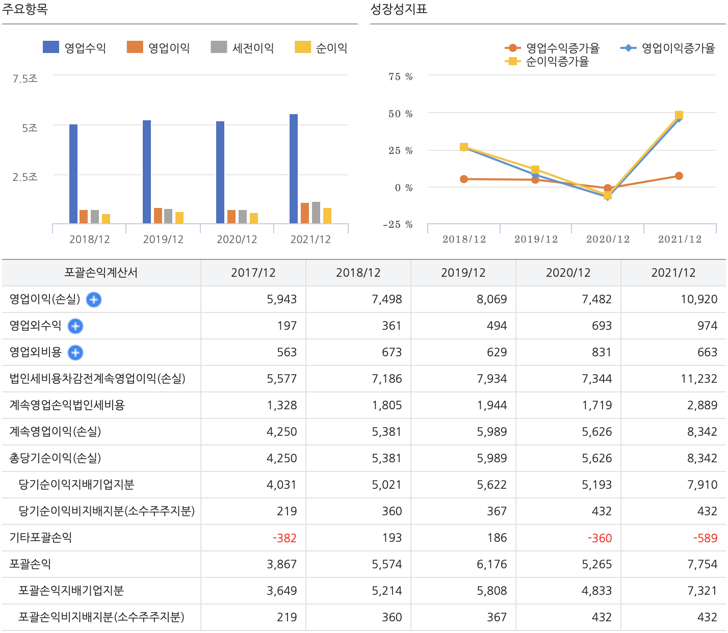 ③ 21년 매출액 : 5조 5,807억