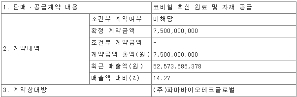 파마바이오테크글로벌과 75억 원 규모 코비힐 백신 원료 및 자재 공급 계약 체결