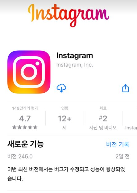 인스타그램 앱을 삭제하고 다시 깔았더니