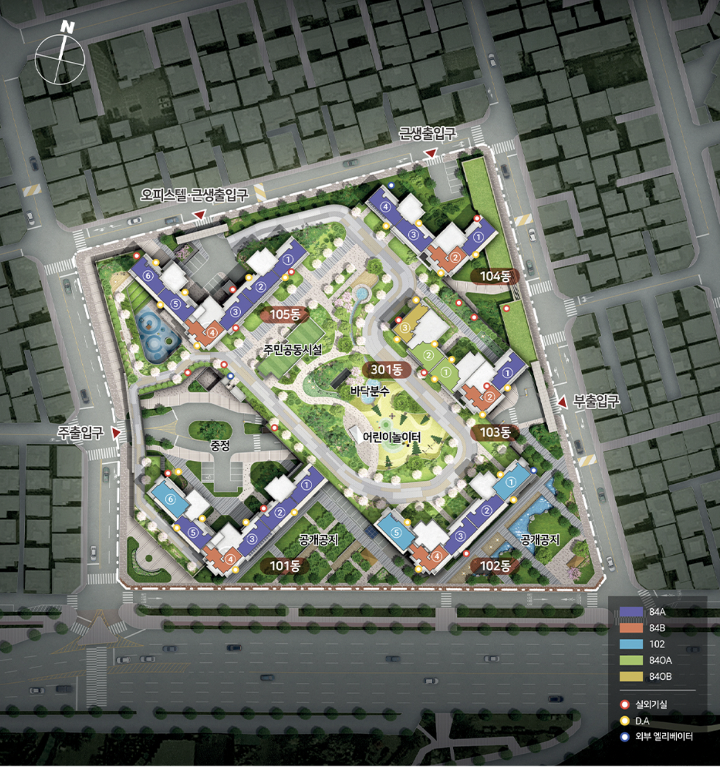 공급규모 : 아파트 지하 2층, 지상 최고 39층, 5개동 총 762세대 및 부대복리시설