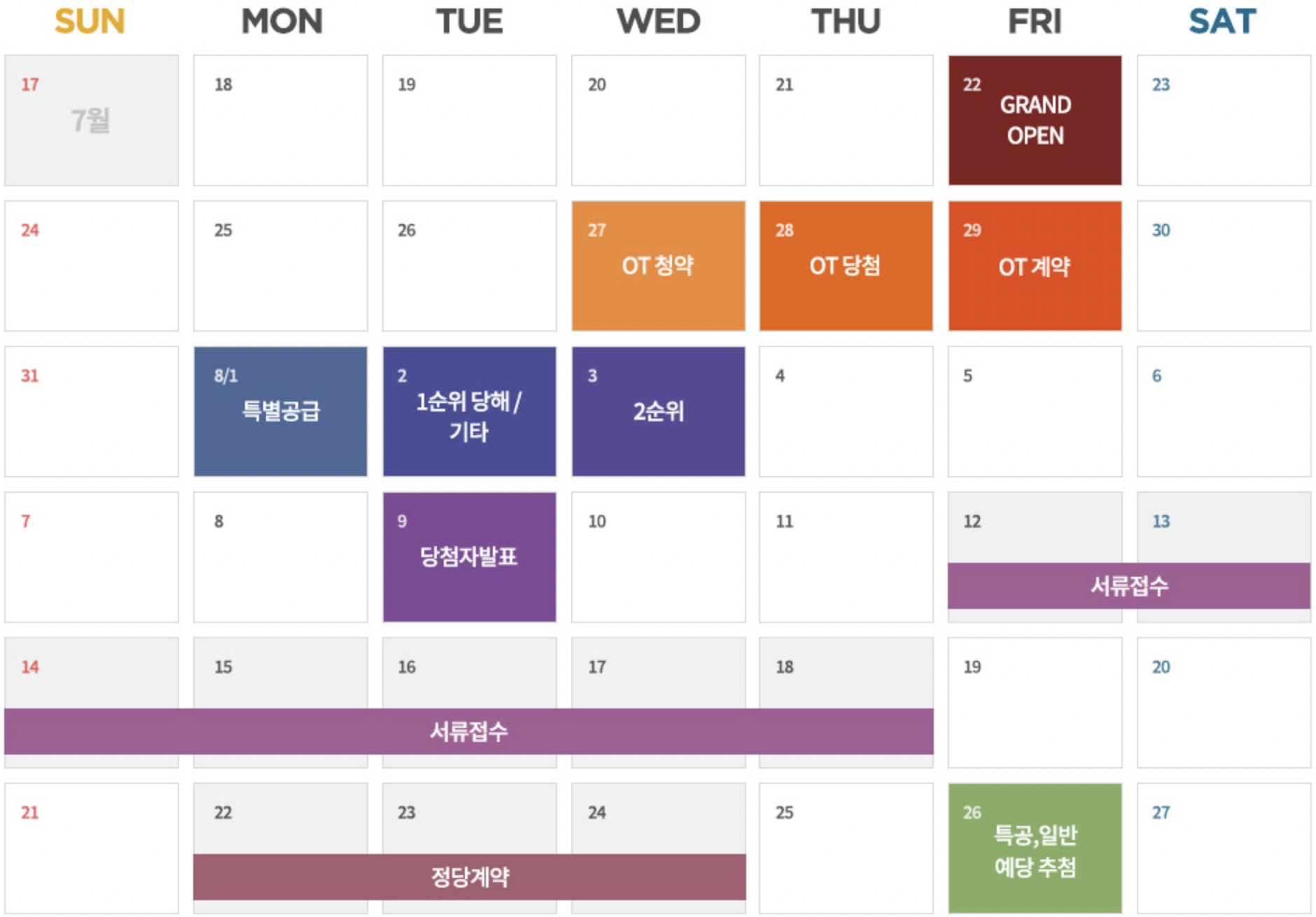 특별공급(기관추천, 다자녀, 신혼부부, 노부모부양, 생애최초) : 2022년 08월 01일 월요일