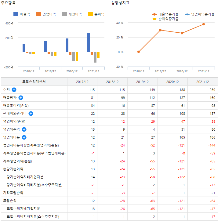 ③ 21년 매출액 : 364억