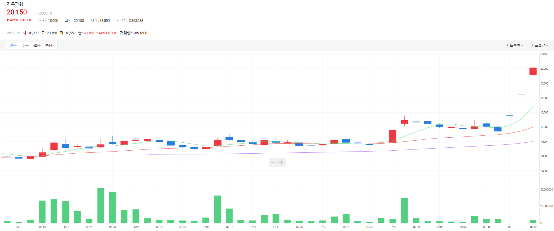 지투파워의 주가가 삼일 연속 상한가를 기록했다.