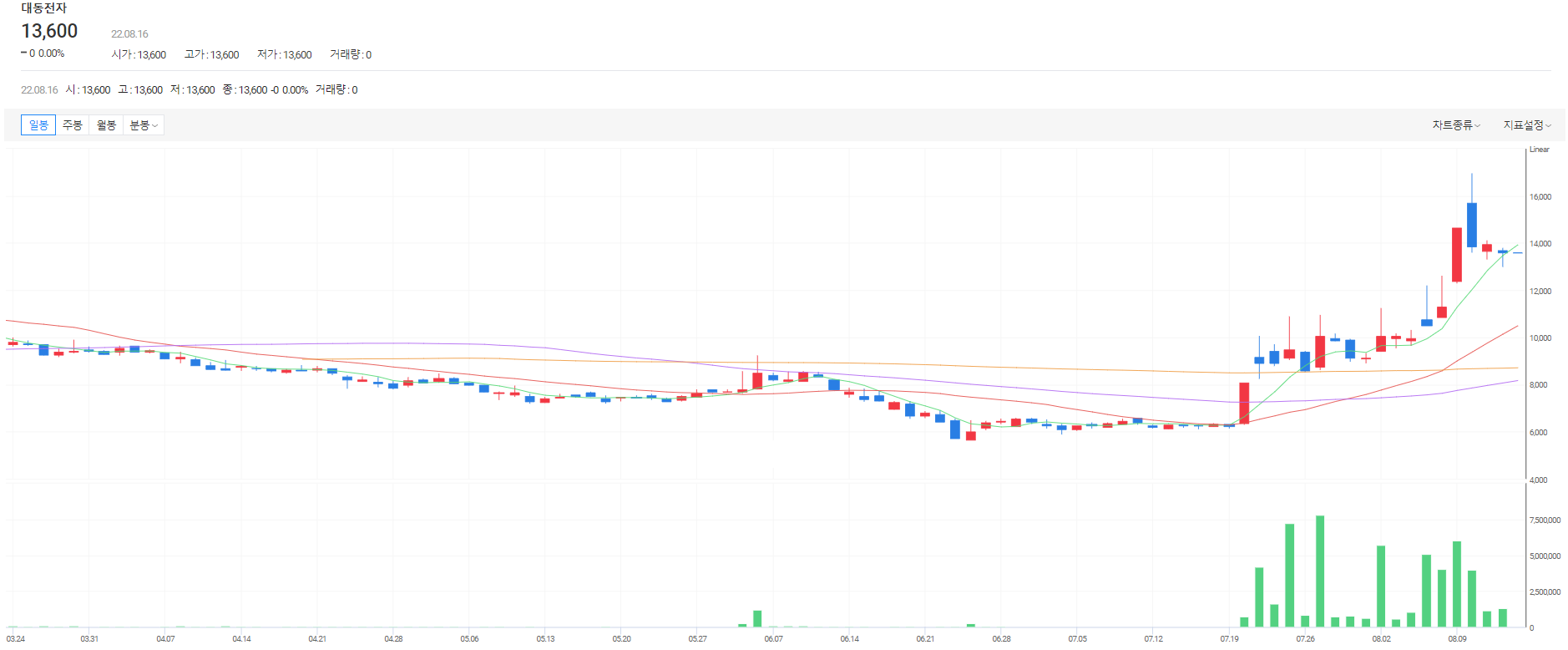 최근 계속해서 급등락을 반복하고 있는 대동전자의 주가