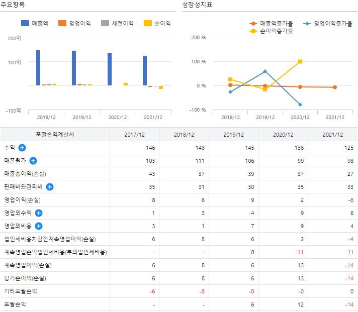 ● 고정밀전장부품의 판매 호조에도 COVID-19 장기화에 따른 해외 고객사의 생산 차질의 영향으로 주력제품의 수출이 위축되며 전년대비 매출 감소.