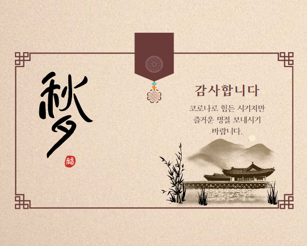 • 올해에도 가족과 함께 풍성한 한가위 보내시고 가정의 건강을 기원합니다.