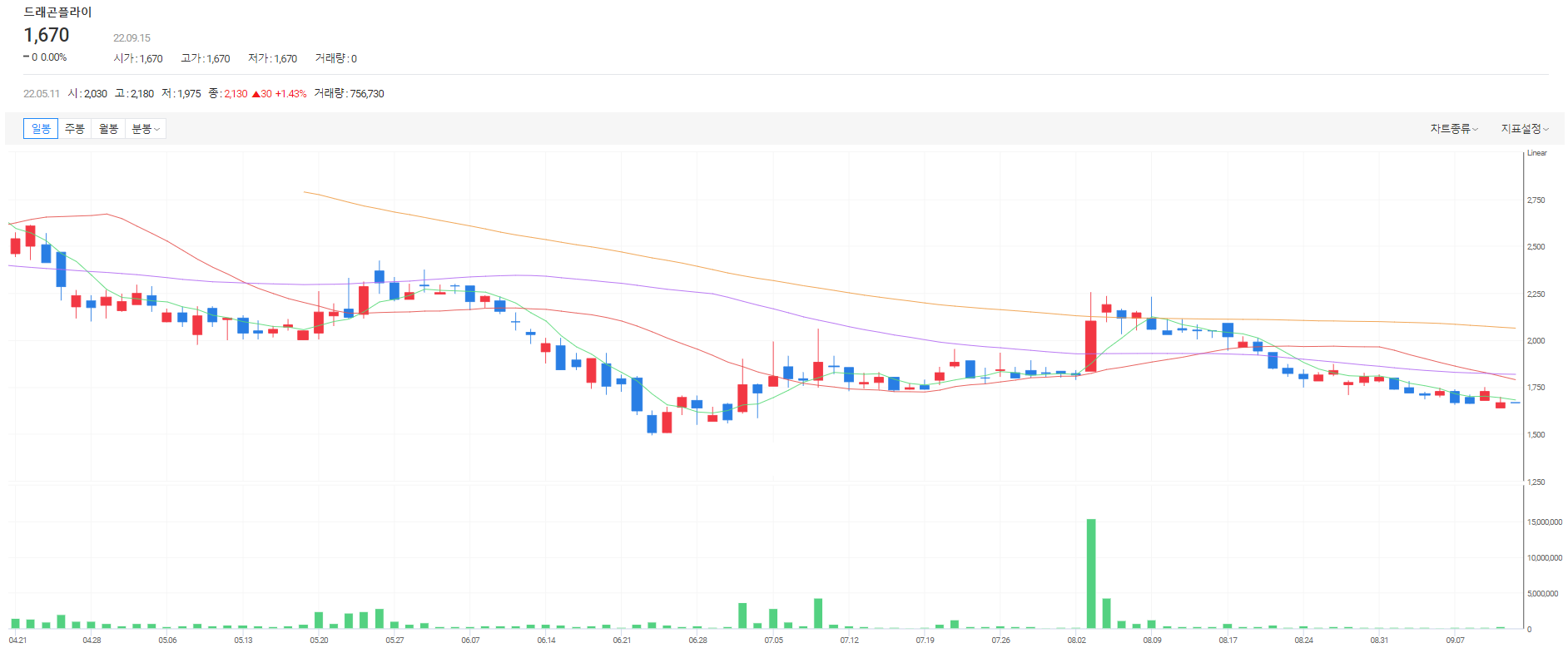 드래곤플라이는 작년에 3자 배정 유상증자를 진행하며 상한가를 기록했었는데 그거와는 다른 주주 우선 공모방식 유상증자라 이번에는 하한가를 기록한 것이다.