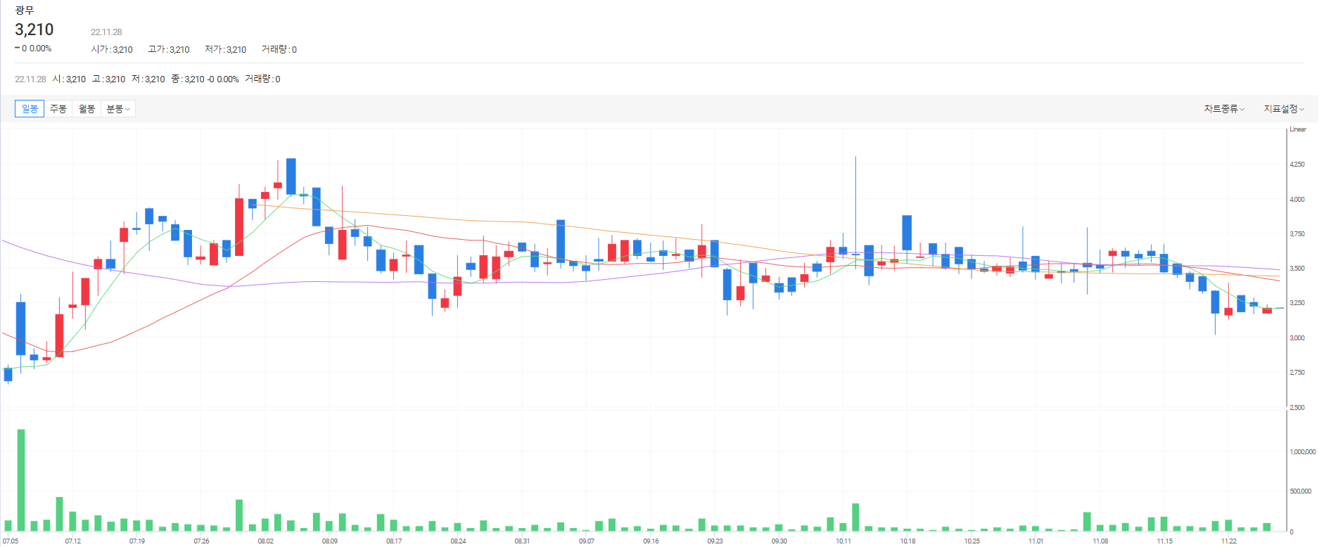 장중 조용하던 광무의 주가가