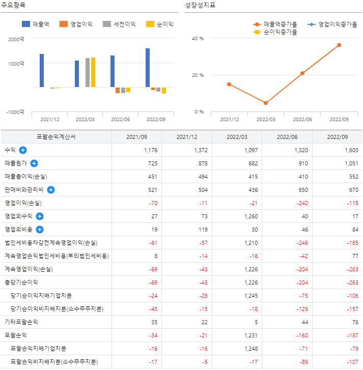 ③ 21년 3분기 매출액 : 1,603억