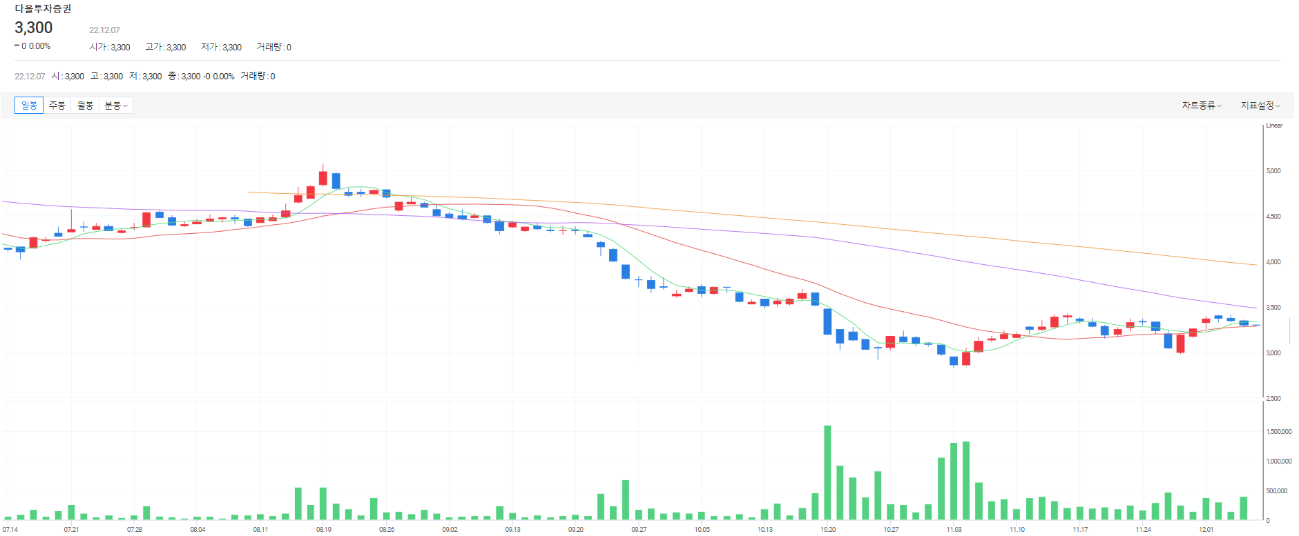 장중에 하락하던 다올투자증권의 주가가
