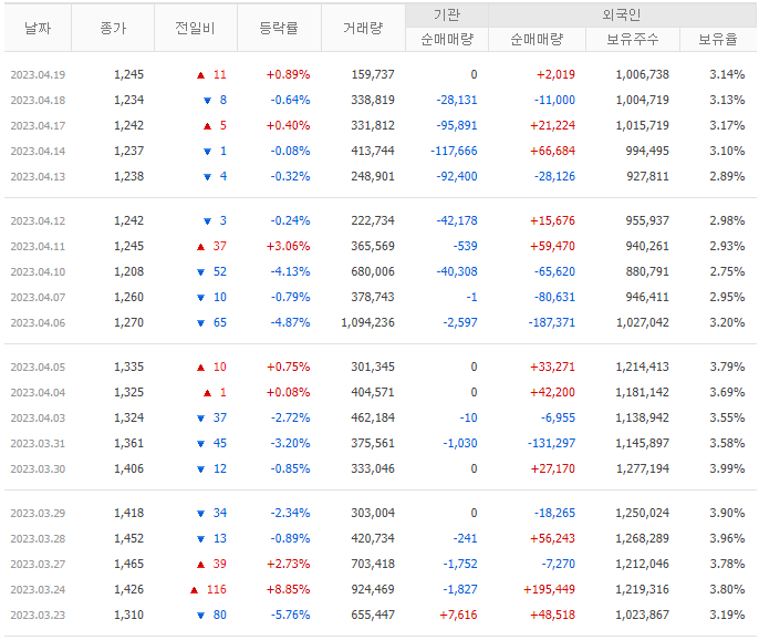 본장에서도 조용했었는데 갑작스레 시간 외 거래에서 9.96% 상승하며 상한가를 기록했다.