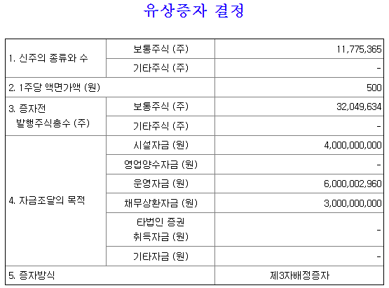 보통 유상증자는 악재로 분류되지만 제3자 배정 유상증자는 호재로 받아들이는 경우가 많다.