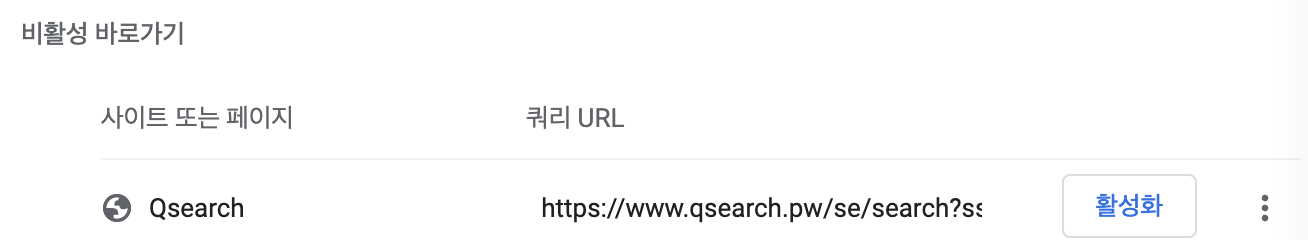 그리고 맨 밑에 비활성 바로가기에 Qsearch를 삭제해 주세요.