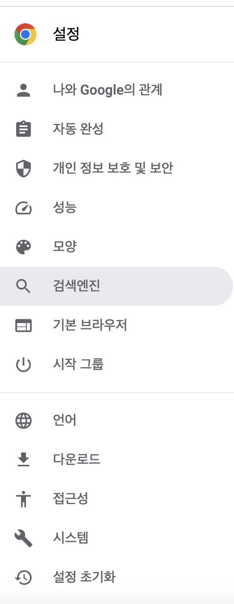 3. 왼쪽에 "검색엔진"을 클릭해 주세요.