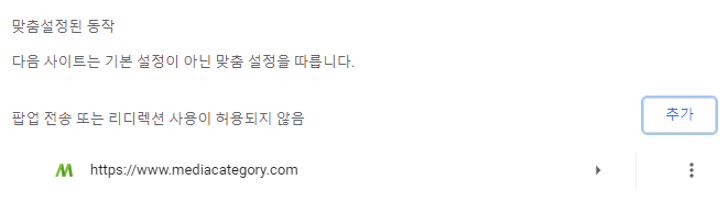 갑작스럽게 뜬금없이 mediacategory.com 이라는 창이 뜨는 것이다.