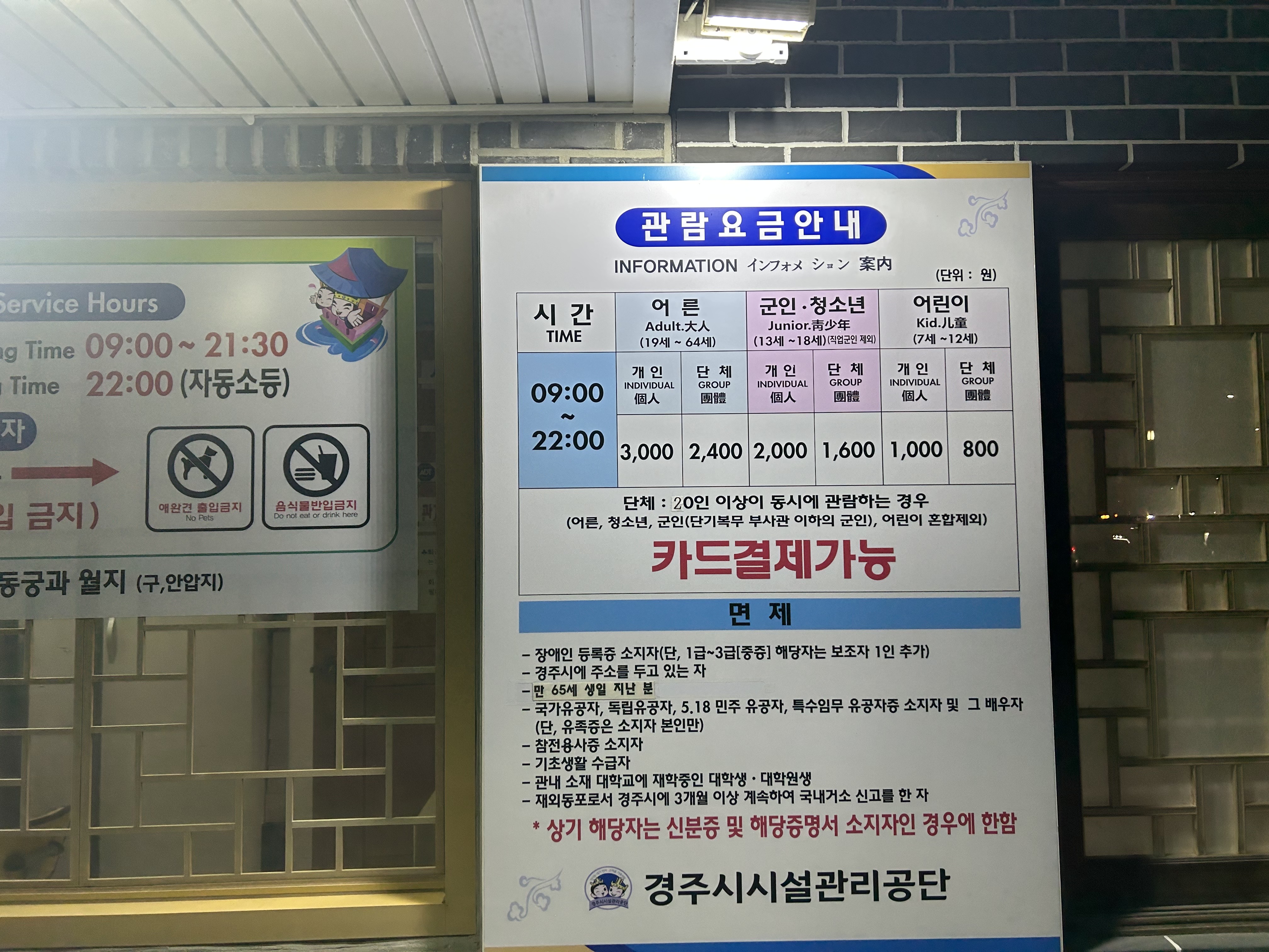 안압지 관람 요금(입장료)